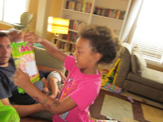 We've worked really hard this year to not buy extra stuff for the kids. At Christmastime, we realized that our kids just weren't excited about it. It bothered us because thinking back to being kids, we lived for Christmas morning and what would be under the tree. So, after that we made several changes in our family - one of them being not buying stuff throughout the year and instead, just being grateful for what we have and saving presents for special occasions like birthdays. So, when it came to be birthday time, we asked Cadence what she wanted and the only thing she came up with was the "tangled" barbie and other than that she "was just grateful for all her other barbies and they were enough"  That was a direct quote!  Praise God it's working! Once she realized that she could ask for more than one thing, she added a couple more but mostly wanted the tangled barbie. So, that's what she got :)
